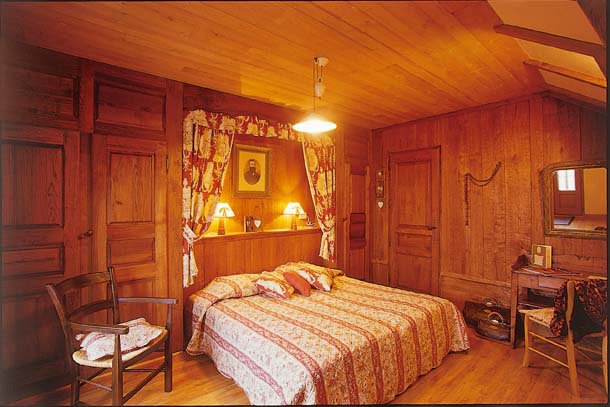 Le chalet, ouvert sur un jardin secret, vous reçoit dans une ambiance feutrée où alcôves à l’ancienne et boutis se mêlent avec bonheur.